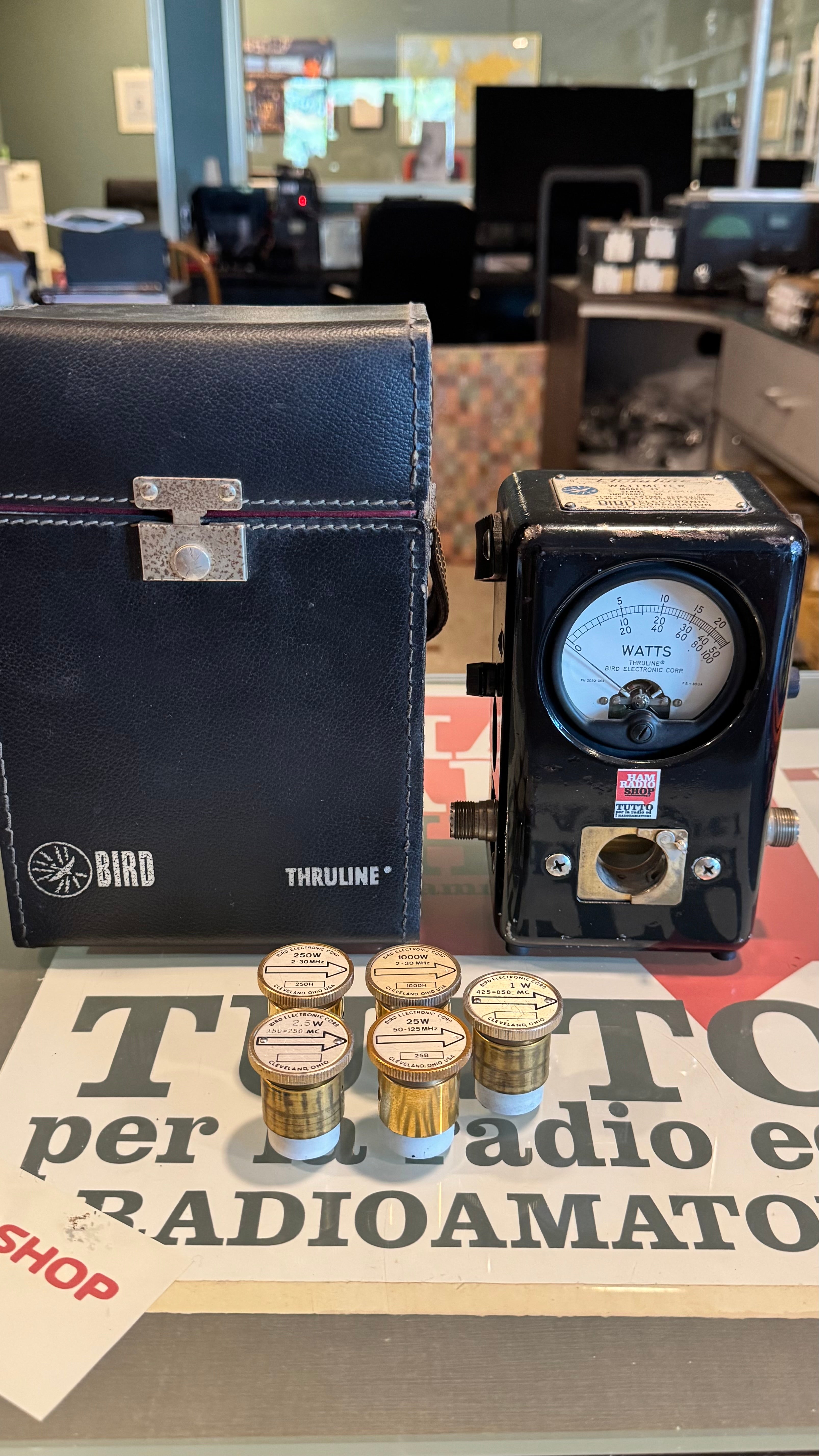 Rosmetro Watmetro Bird 43 fornito di 5 tappi per le varie frequenze e potenze come da foto e sua custodia in pelle.