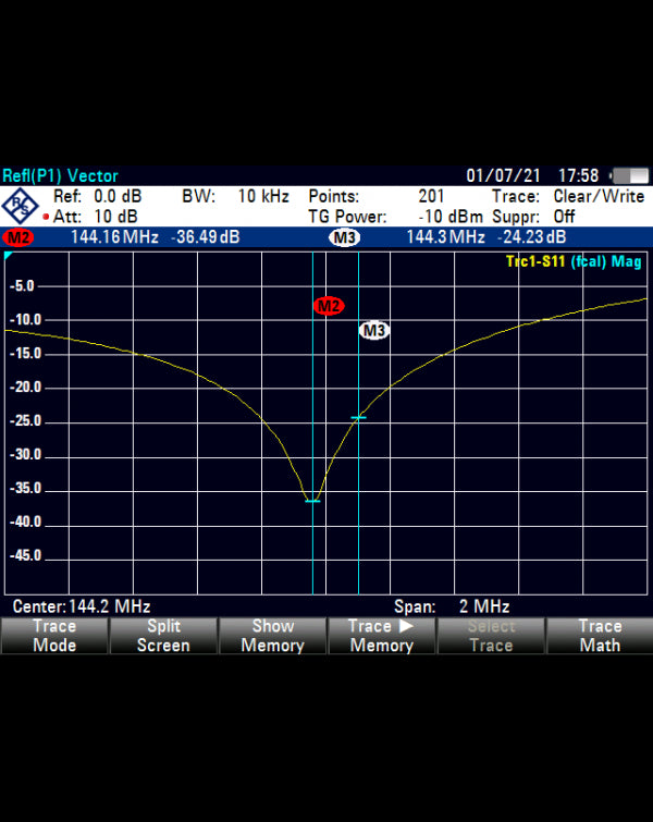 144 MHz - 34.8°-38.2° 50 MHz - 67°-115° |