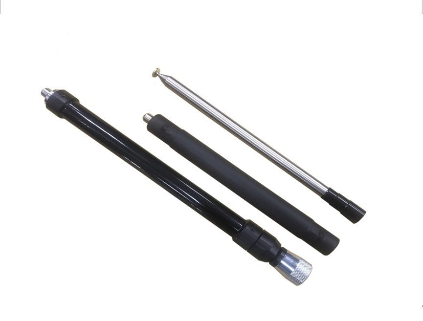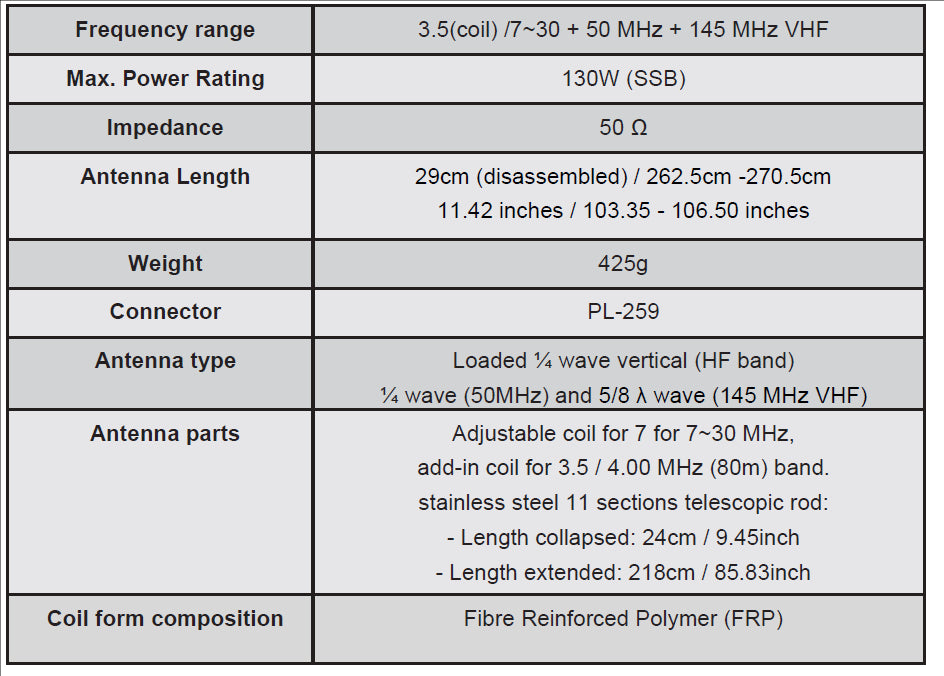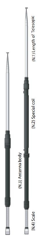 Antenna portatile ideale in uso veicolare o in operazioni mobili tarabile da 3.5-7-30-50 a 145 MHz mediante movimento verticale della bobina di carico alla base.