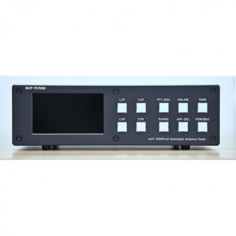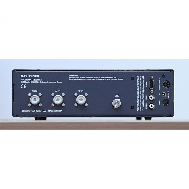 - Il mAT-1500ProII è un accordatore automatico di antenna multiuso ad alta potenza che può adattarsi a quasi tutti i trasmettitori e amplificatori lineari. La potenza RF massima consentita è di 1500 watt (SSB), la gamma di frequenza consentita è 1,8-30 MHz e due antenne possono essere collegate contemporaneamente. In base ai diversi trasmettitori collegati, l'accordatore ha tre modalità, YAESU, ICOM e GENERALE. L'accordatore può determinare e abbinare automaticamente il tipo di trasmettitori collegati per ridurre al minimo il funzionamento manuale.