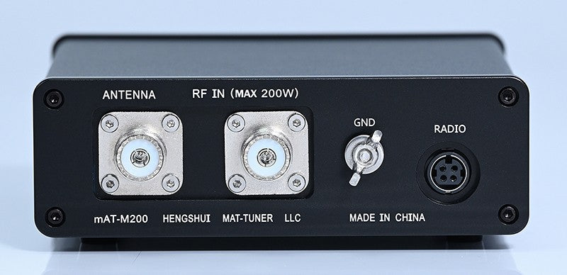 mAT-M200 è progettato appositamente per i trasmettitori di marca ICOM e KENWOOD con potenza RF non superiore a 200 W (SSB). Questo sintonizzatore è anche un'ottima scelta per gli utenti che amano utilizzare il trasmettitore in modalità digitali come FT8, CW e RTTY. Per la maggior parte dei sintonizzatori, non è possibile sopportare 100 watt di segnali RF in modalità digitale che entrano nel sintonizzatore. mAT-M200 consente fino a 100 watt di segnali RF in modalità digitale di passare attraverso il sintonizzatore. mAT-M200 ha una gamma di frequenza di lavoro di 1,8-54 MHz e una potenza RF massima consentita di 200 watt. Come sintonizzatore di antenna esterno, è collegato al trasmettitore ICOM tramite il cavo di controllo mAT-CI o al trasmettitore KENWOOD tramite il cavo mAT-CK. Il sintonizzatore è dotato di cavo mAT-CI di default. Il trasmettitore fornisce alimentazione al sintonizzatore tramite questo cavo, comunica con esso e controlla il funzionamento del sintonizzatore. Il sintonizzatore non richiede alimentazione aggiuntiva. Il sintonizzatore è compatibile con i sintonizzatori ICOM e KENWOOD e gli utenti possono facilmente controllare il sintonizzatore utilizzando i pulsanti [TUNE] o [AT] sul pannello dell'apparecchiatura radio. Ciò rende il funzionamento del sintonizzatore molto comodo.