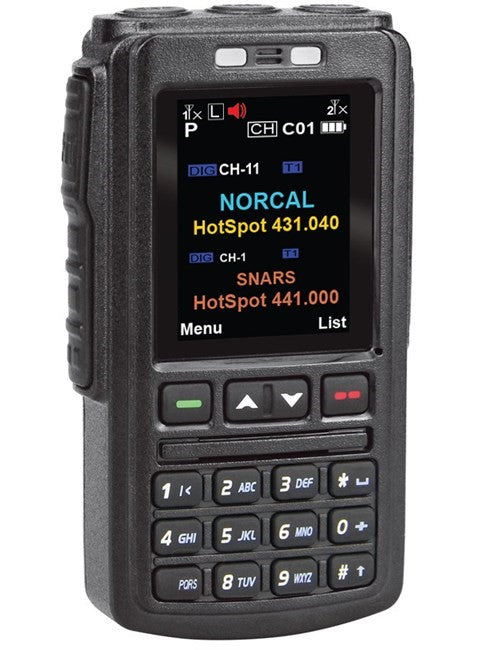 Con una diagonale di 2,2", il display a colori del BT-01 è ancora più grande di quello da 1,7" del D578UV! Un ulteriore feedback visivo è fornito all'utente da due LED multicolore (blu/verde/rosso) sul pannello frontale. L'altoparlante integrato con una potenza di uscita LF di 1000 mW è facile da capire anche in ambienti rumorosi.