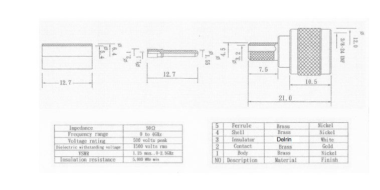Connettore Mini UHF maschio a crimpare X cavi 5mm