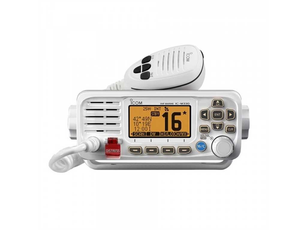 l Vhf fisso Icom IC-M330GE è la soluzione ideale per chi cerca un vhf compatto, semplice da usare e completo. E' provvisto infatti di Gps integrato per conoscere in ogni momento l'esatta posizione in cui ci si trova. Vi stupirà per le sue dimensioni ridotte che lo rendono adatto ad essere installato anche in consolle con spazi limitati. Grazie ad una serie di tasti ad accesso rapido le funzioni principali sono raggiungibili in modo intuitivo e visibili nel display retroilluminato. Il vhf fisso Icom IC-M330GE presenta l'interessante la nuova funzione Aquaquake per liberare l'altoparlante dall'acqua ed avere sempre la migliore qualità di ascolto. Tutti i prodotti Icom vengono severamente testati prima di essere messi in vendita.