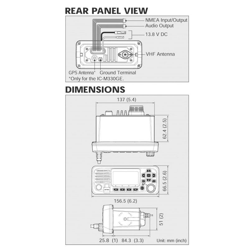 IC-M330GE Ricetrasmettitore fisso nautico VHF/FM nero DSC in classe D/GPS con 25W di potenza RF, grado di protezione IPX7
