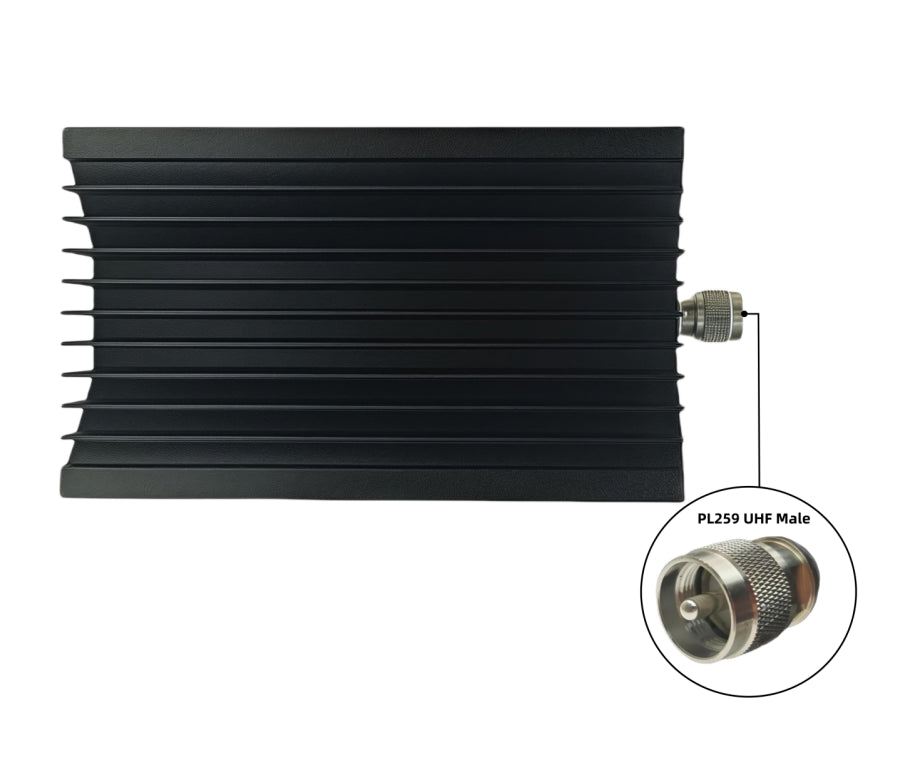 Progettato con un connettore maschio UHF PL259 è ideale per testare, sintonizzare e terminare in sicurezza trasmettitori RF ad alta potenza su bande HF, VHF e UHF.