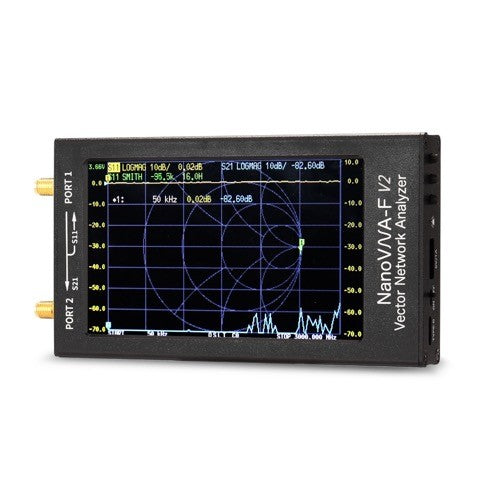 NANOVNA-F V2 è un analizzatore di rete vettoriale portatile fino a 3GHz, di nuova generazione. È progettato con LCD IPS da 4,3 pollici e custodia in lega di alluminio. Ha un batteria al litio integrata di grande capacità, pari a 5000 mAh con una autonomia in standby fino a 7 ore.
