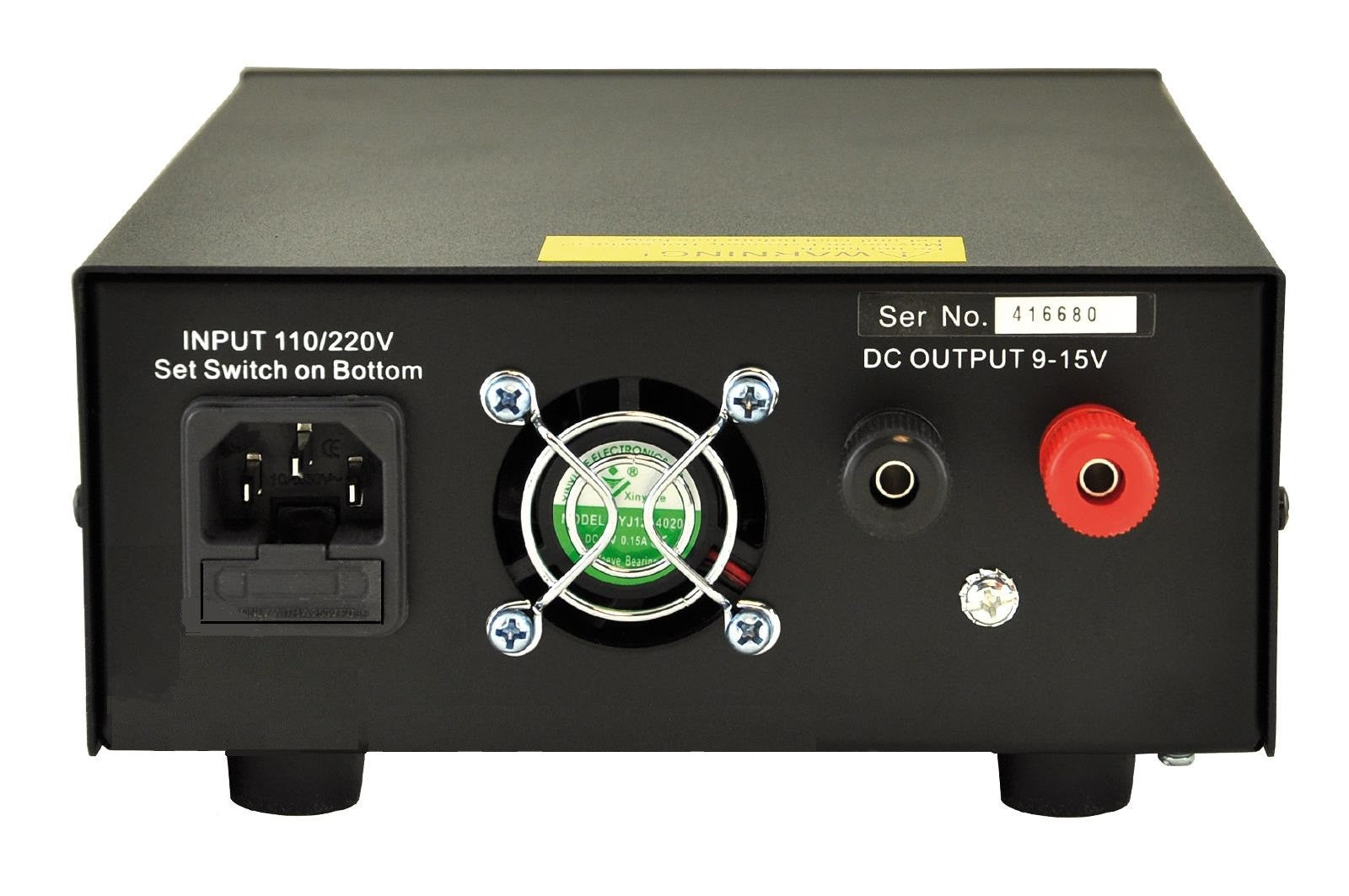 NS-2230D Alimentatore switching da 28A continui (30A massimi intermittenti) con regolazione della tensione in uscita da 9 a 15Vcc oppure fissa a 13,8Vcc, ampio strumento digitale retroilluminato con visualizzazione contemporanea della tensione di uscita e dell'assorbimento in Ampere, ripple ˂100mVp-p, protetto per eventuali corto-circuiti, sovraccarichi e sovratensione. Alimentazione a 220Vac (± 10%). Dimensioni 165 x 80 x 200mm (LxHxP) e peso di 1,54Kg.