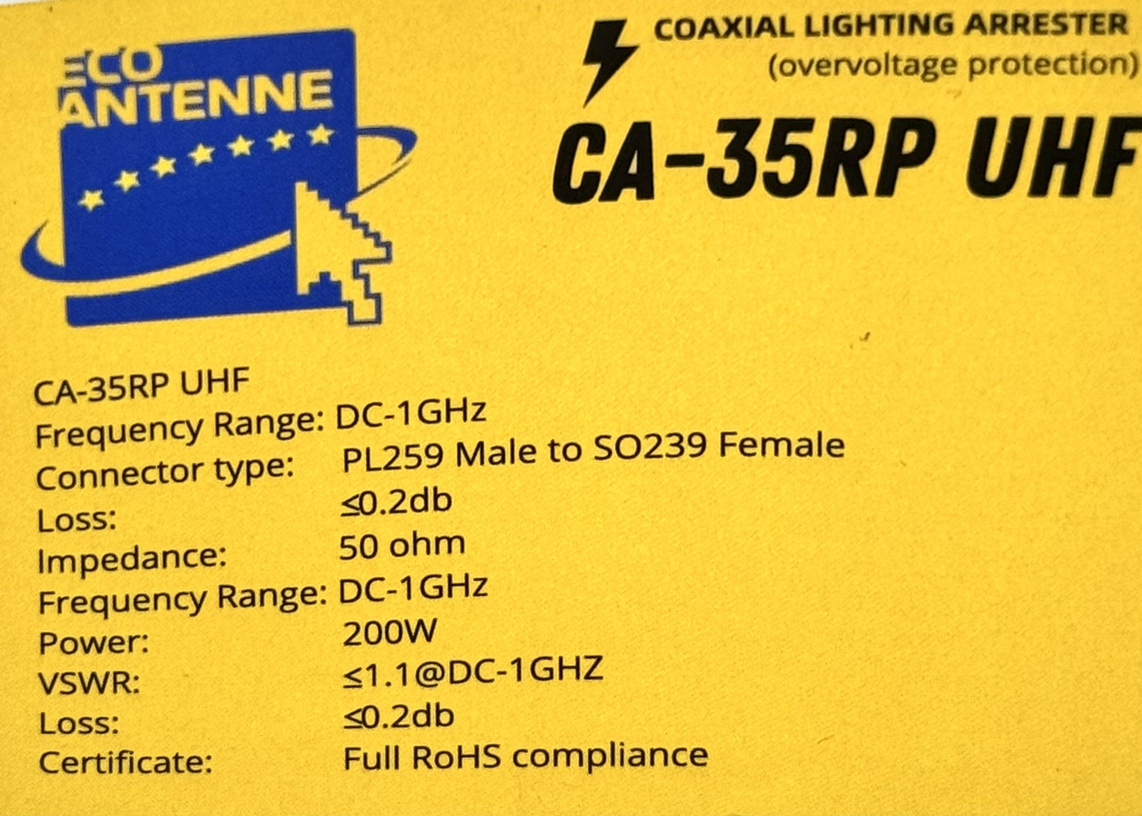 ECO ANTENNE CA-35RP UHF per protezione dai fulmini, conn. SO239-PL259