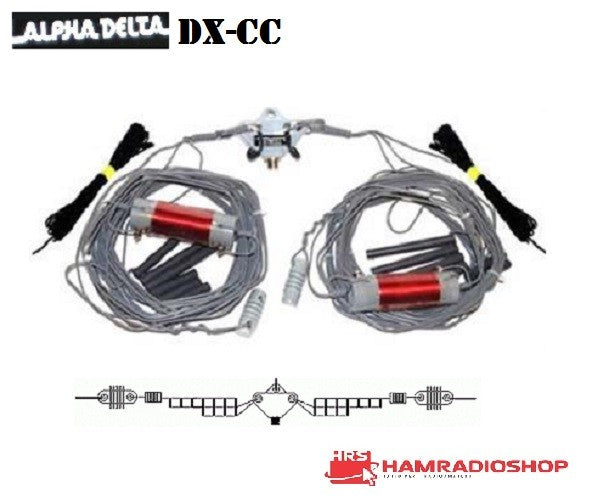 Le antenne dipolo parallele Alpha Delta sono costituite dall'isolante centrale Delta Delta DELTA-C e dagli isolatori terminali, bobine ISO-RES collegate ai cavi 80/40/15 metri e fili separati per 20 e 10 metri.