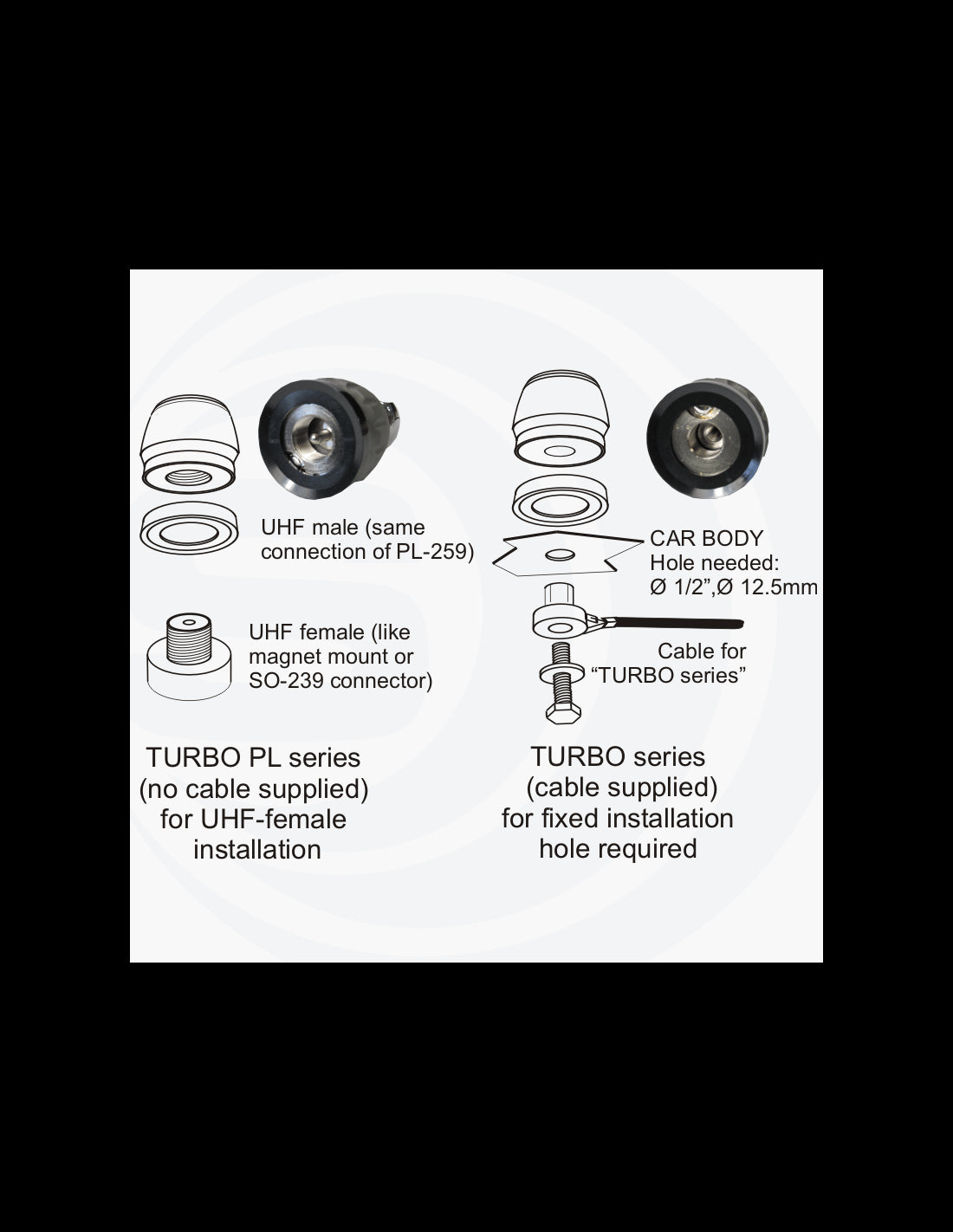 Sirio TURBO 5000 antenna robusta con prestazioni eccellenti grazie ai materiali utilizzati ed alla accurata progettazione. Lo stilo conico di colore naturale in acciaio Inox 17/7 PH alto quasi 2 metri consente collegamenti simili a quelli ottenibili con antenne fisse a pari condizioni.