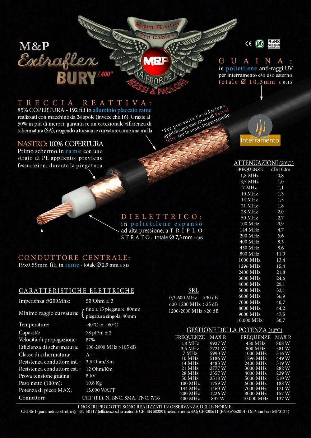 - Possiede le stesse ottime attenuazioni di un Hyperflex 10, compresa la trefola da 19 fili nel conduttore centrale che garantisce un'ottima flessibilità. L'unica diversità sta nella guaina, realizzata in polietilene (come l'Airborne 10) che fornisce una grande resistenza al cavo, tanto da poter essere interrato senza problemi.