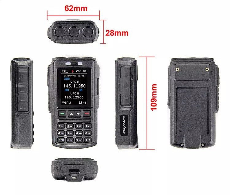 Il concetto di funzionamento è molto simile a quello noto di Anytone: le zone e i canali possono essere commutati tramite i tasti su/giù, mentre l'inserimento diretto della frequenza può essere effettuato tramite il tastierino numerico illuminato.