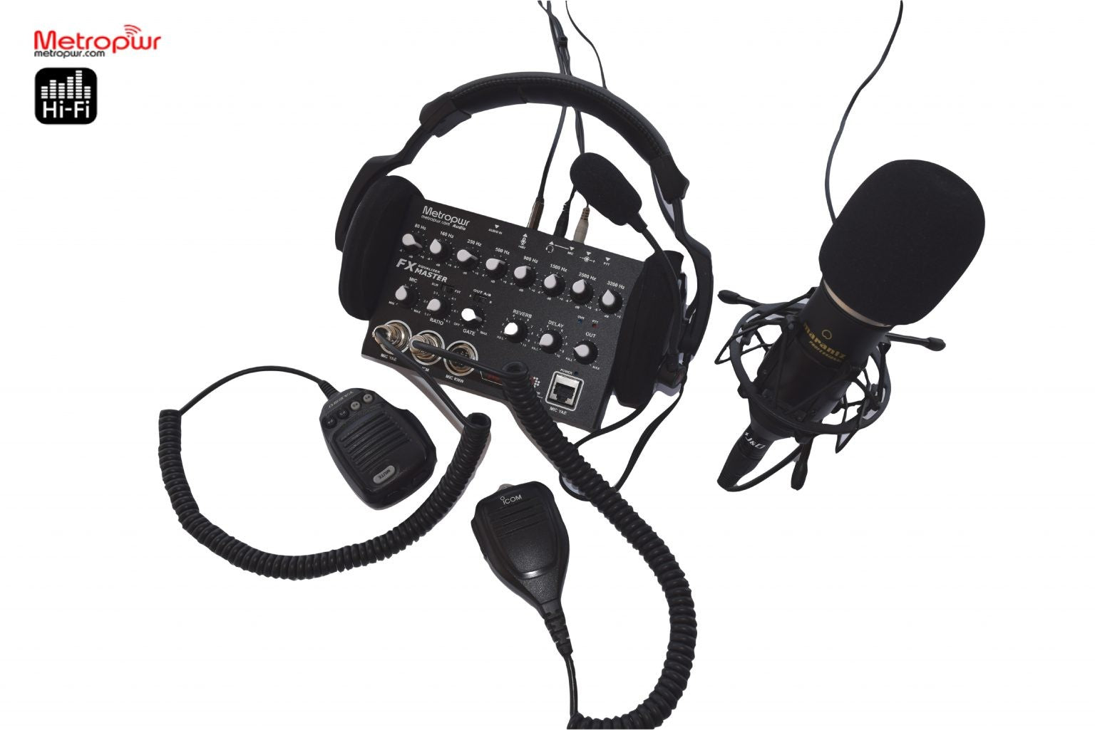 FXMASTER è un equalizzatore a 8 bande con noise gate regolabile, riverbero. Questo dispositivo ha la capacità di interfacciare qualsiasi tipo di microfono da studio di diverse marche e commutarlo su 2 radio. L'elevata qualità audio permette di trasformare anche nuove/vecchie radio in hifi ssb. L'audio può essere perfettamente amplificato ed equalizzato per adattarlo a qualsiasi tipo di microfono. Gestisce microfoni dinamici a condensatore da studio o ICOM, YAESU, KENWOOD e altri microfoni commerciali. Tutti i microfoni possono essere collegati direttamente senza dover effettuare nuove connessioni o adattatori. FXMASTER ha uno switch interno per poter utilizzare 2 radio contemporaneamente.