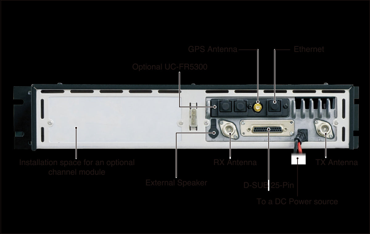 The IC-FR5300 series has a programmable D-SUB 25-pin accessory connector for connecting an external remote control devices. Also, modulation/demodulation signals can be input/output from the D-SUB connector.
