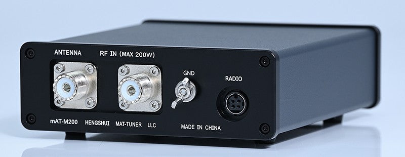 mAT-M200 è progettato appositamente per i trasmettitori di marca ICOM e KENWOOD con potenza RF non superiore a 200 W (SSB). Questo sintonizzatore è anche un'ottima scelta per gli utenti che amano utilizzare il trasmettitore in modalità digitali come FT8, CW e RTTY. Per la maggior parte dei sintonizzatori, non è possibile sopportare 100 watt di segnali RF in modalità digitale che entrano nel sintonizzatore. mAT-M200 consente fino a 100 watt di segnali RF in modalità digitale di passare attraverso il sintonizzatore. mAT-M200 ha una gamma di frequenza di lavoro di 1,8-54 MHz e una potenza RF massima consentita di 200 watt. Come sintonizzatore di antenna esterno, è collegato al trasmettitore ICOM tramite il cavo di controllo mAT-CI o al trasmettitore KENWOOD tramite il cavo mAT-CK. Il sintonizzatore è dotato di cavo mAT-CI di default. Il trasmettitore fornisce alimentazione al sintonizzatore tramite questo cavo, comunica con esso e controlla il funzionamento del sintonizzatore. Il sintonizzatore non richiede alimentazione aggiuntiva. Il sintonizzatore è compatibile con i sintonizzatori ICOM e KENWOOD e gli utenti possono facilmente controllare il sintonizzatore utilizzando i pulsanti [TUNE] o [AT] sul pannello dell'apparecchiatura radio. Ciò rende il funzionamento del sintonizzatore molto comodo.