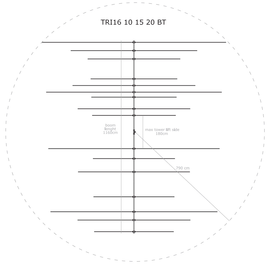è una yagi tri-band dalle prestazioni superbe progettato per essere installato su grandi torri. La larghezza dello spazio tra gli elementi attorno alla piastra "boom to mast" consente di installarlo su torri fino a 180 cm / 70 pollici per lato. Utilizza sedici (16) elementi su un braccio da 11,6 m / 38 piedi con: riflettore a 4 elementi (20 M), driver e due registi; 5 elementi (15 M) riflettore, pilota e tre registi; 7 elementi (10 M) riflettore, driver e cinque registi.