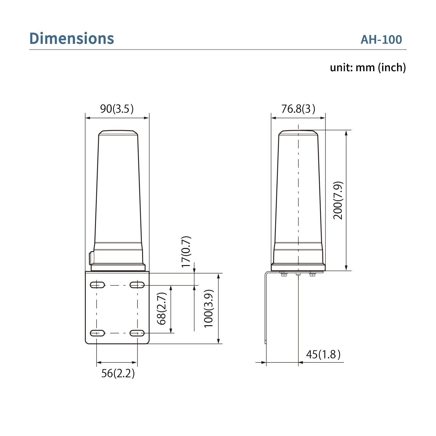 Dimensions (W x H x D) 76.8 x 200 x 76.8 mm, 3.0 x 7.9 x 3.0 inch