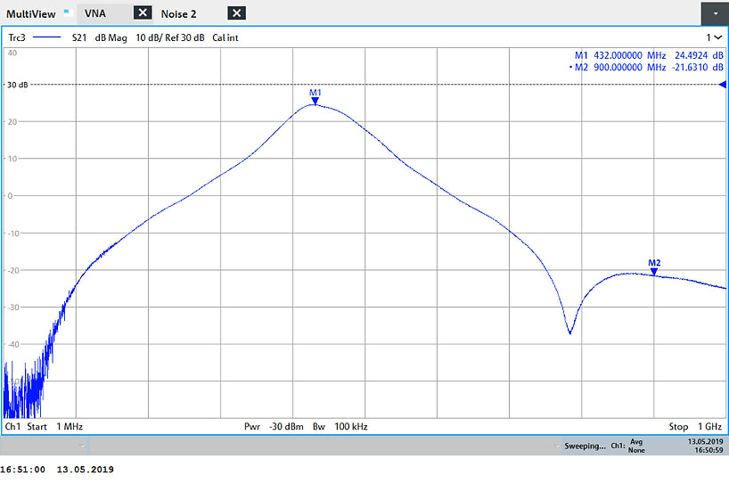- Bassa figura di rumore da 420 a 450 MHz (typ. 0.80dB): per cogliere anche i segnali più deboli.