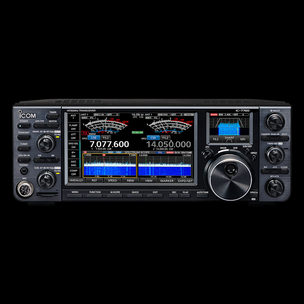 IC-7760 è un ricetrasmettitore All Mode HF/50 MHz che opera in USB, LSB, CW, RTTY, PSK31/63, AM, FM con 200Watt di potenza RF e con alimentatore incorporato. Nel mondo connesso di oggi, questo nuovo apparato introduce un’innovazione con il pannello di controllo separato dall’unità RF.