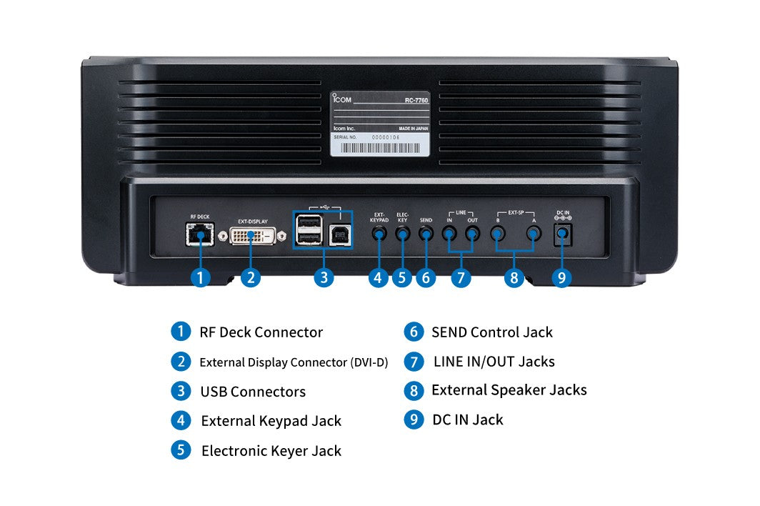 Un cavo di controllo (lunghezza 3m.) è fornito con il ricetrasmettitore, mentre un cavo LAN disponibile in commercio può essere utilizzato per installare il deck RF in una posizione più remota.È possibile utilizzare cavi LAN commerciali (Cat5e o superiori), fino a una lunghezza massima di 100 m. Questo consente di collocare il deck RF in un rack o in un’altra posizione lontana dal tavolo della stazione, creando un ambiente di lavoro silenzioso, lontano dal rumore della ventola utilizzata per dissipare il calore generato dal deck RF.