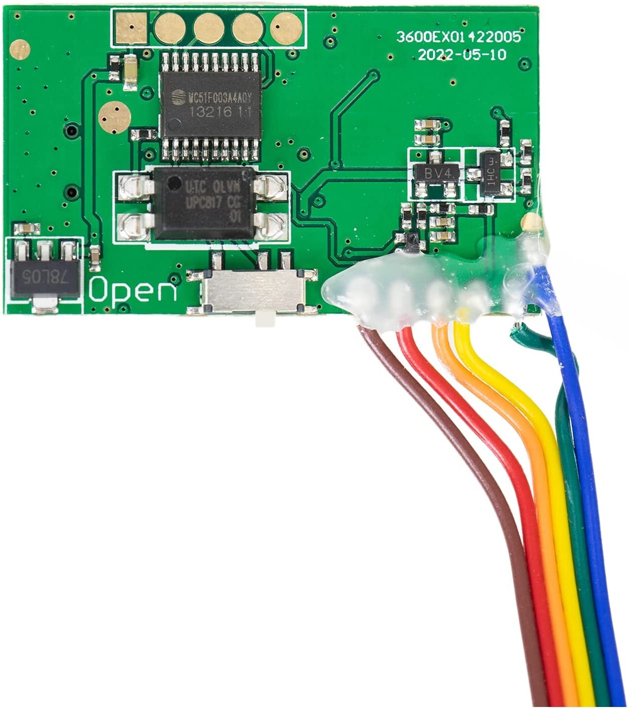Collega il modulo a un computer e copia il file audio personalizzato (MP3 o WAV, lungo fino a 1,5 secondi) come indicato nel manuale.